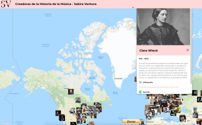 El mapa de 'Creadoras de la Historia de la Música' de Sakira Ventura - - Noticias “ Hubo un tiempo en el que yo creía tener talento creativo, pero he renunciado a esa idea; una mujer no debe tener el deseo de componer (...) ”. Esto escribía Clara Wieck, u...