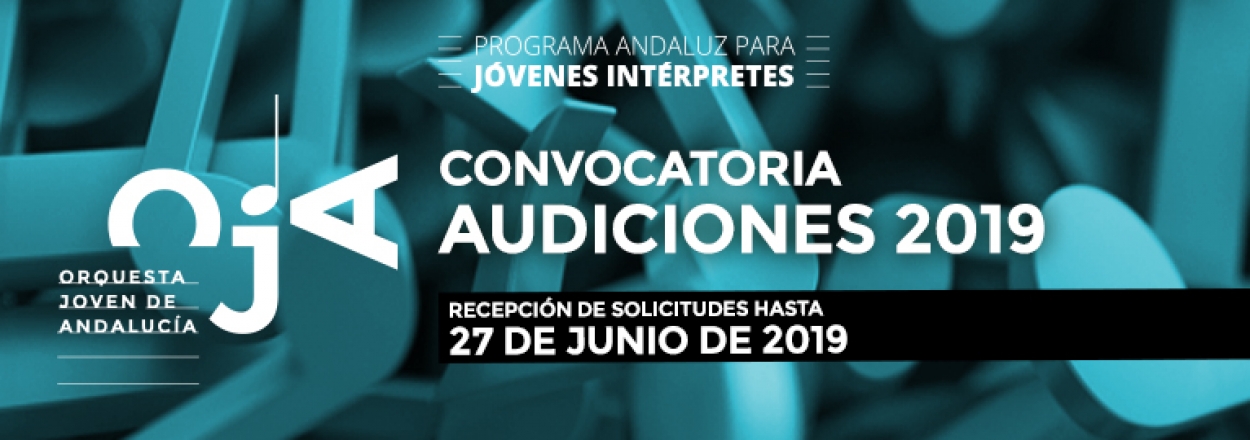 La ORQUESTA JOVEN DE ANDALUCÍA ha abierto el plazo de presentación de solicitudes a su Convocatoria de Audiciones 2019, en las especialidades de viento madera y viento metal de: FLAUTA, OBOE, CLARINETE, FAGOT, TROMPA, TROMPETA, TROMBÓN, TROMBÓN BAJO y TUBA.