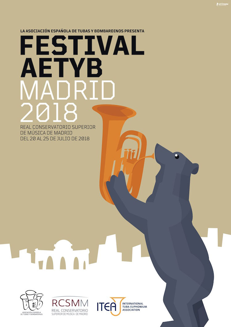 La Asociación Española de Tubas y Bombardinos (AETYB), en colaboración con la International Tuba and Euphonium Association (ITEA), celebra del 20 al 25 de Julio su tercer gran Festival y Concurso, 'el Festival AETYB Madrid 2018', que se desarrollará en las instalaciones del Real Conservatorio Superior de Música de Madrid. Por ello, la Asociación Española de Tubas y Bombardinos abre el plazo de inscripción y presenta las bases para participar en el Concurso y Festival AETYB.