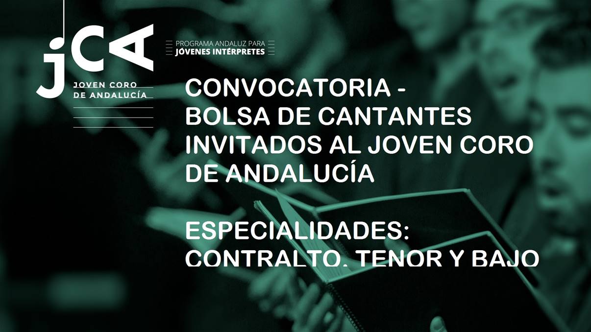El Joven Coro de Andalucía, proyecto del Programa Andaluz para Jóvenes Intérpretes de la Agencia Andaluza de Instituciones Culturales, abre una convocatoria extraordinaria para crear una Bolsa de Cantantes INVITADOS y cubrir posibles necesidades de la plantilla del Joven Coro de Andalucía en las especialidades de CONTRALTO, TENOR y BAJO.