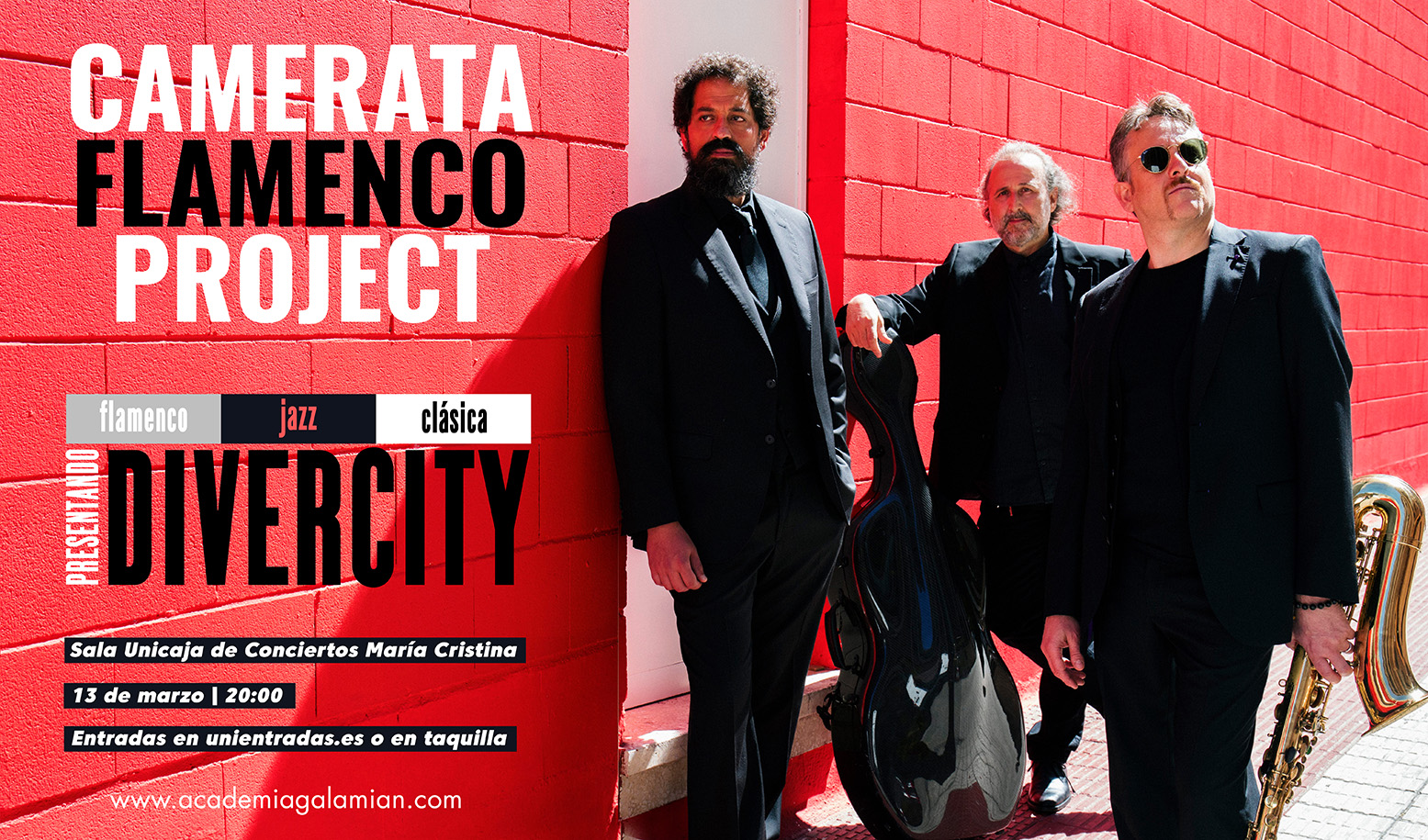 El próximo viernes 13 de marzo a las 20:00h en la Sala Unicaja de conciertos Maria Cristina, la Academia Internacional Galamian presenta un nuevo concierto de profesores: Camerata Flamenco Project.