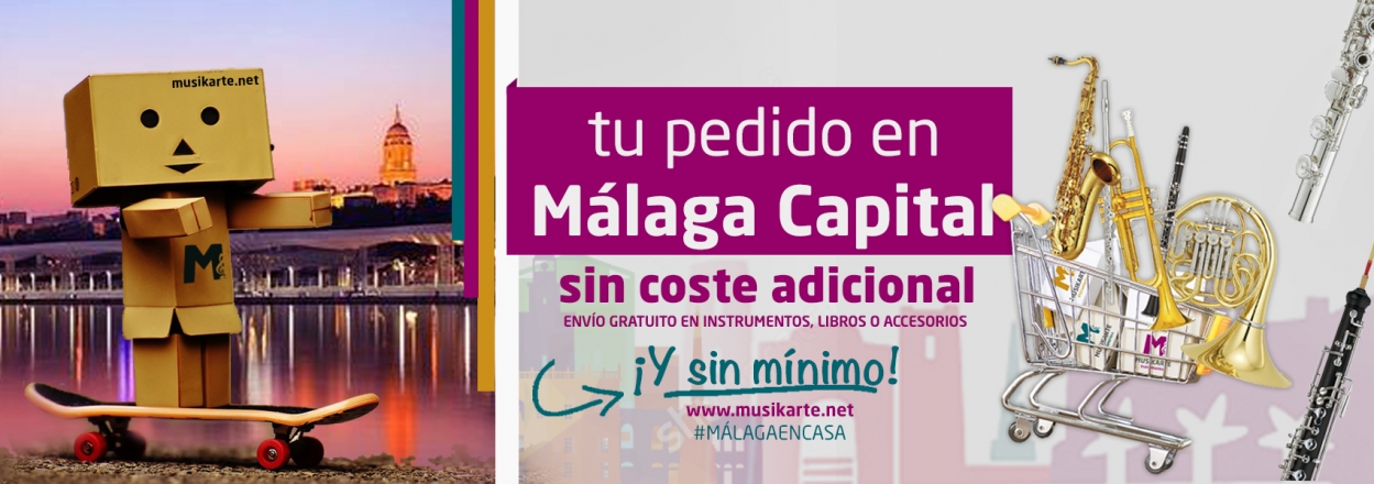 Si realizas tu pedido desde fuera de Málaga (capital) nuestro servicio web funcionará con total normalidad, y los envíos superiores a 79€ en instrumentos, libros o accesorios, también se enviarán de forma totalmente gratuita. En el caso de que tu pedido sea inferior a 79€, el coste de envío en libros será de 2,95€, y en instrumentos o accesorios de 6,95€.